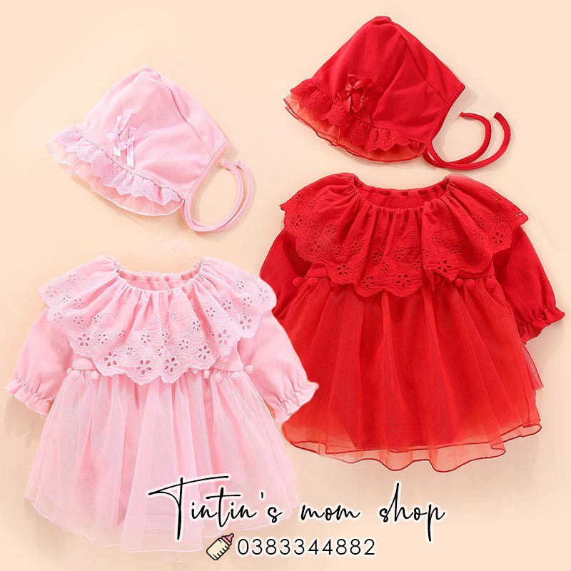 Thời trang trẻ em & trẻ sơ sinh > Quần áo trẻ em > Bộ đồ liền thân || Sét Váy Body Cổ Bèo Thêu Hoa Đầy Tháng/ Thôi Nôi Cho Bé Gái (Kèm Mũ Bèo Tiểu Thư)