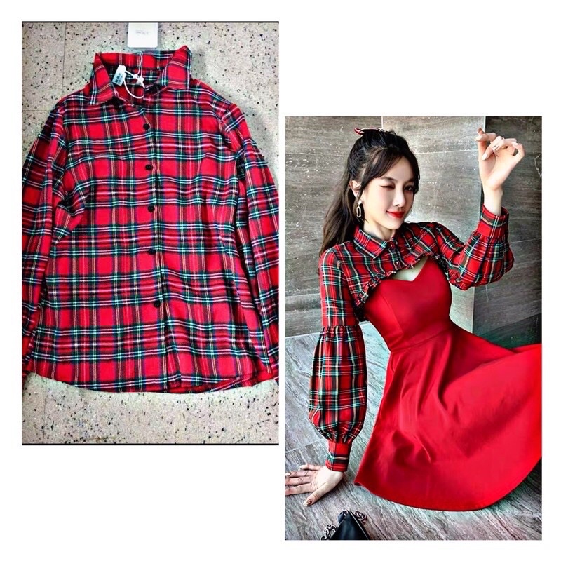 🌹Set váy đỏ phối áo khoác kate cotton sọc caro trang trí siêu dễ thương 🌹