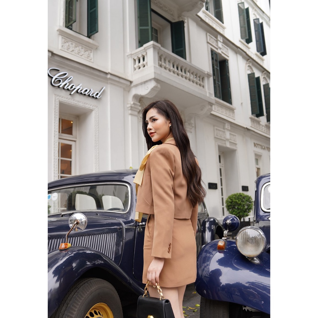 Giới thiệu Áo Vest nữ dáng ngắn vạt chéo phối chân váy xẻ trước VENUS
