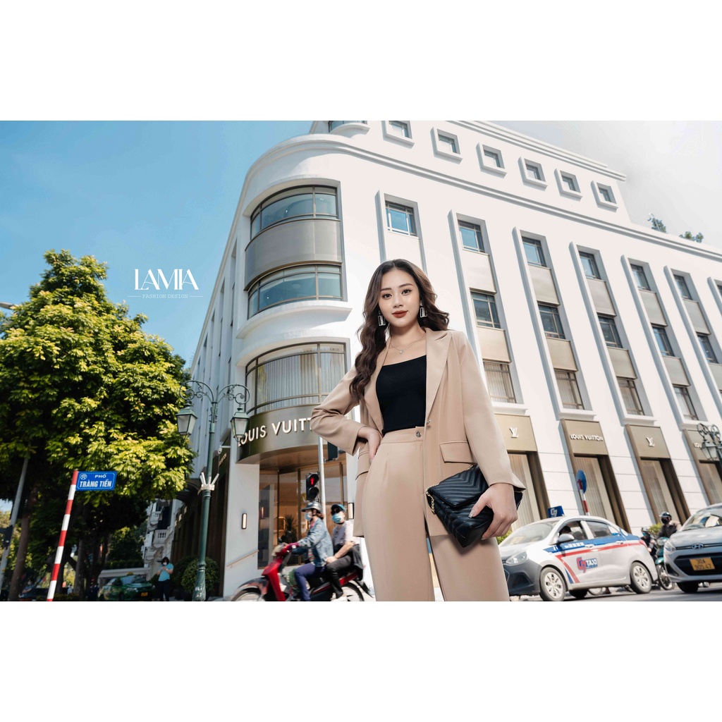 Giới thiệu SET VEST NỮ TAY DÀI PHỐI QUẦN ỐNG RỘNG MÀU BE LAMIA DESIGN LE113