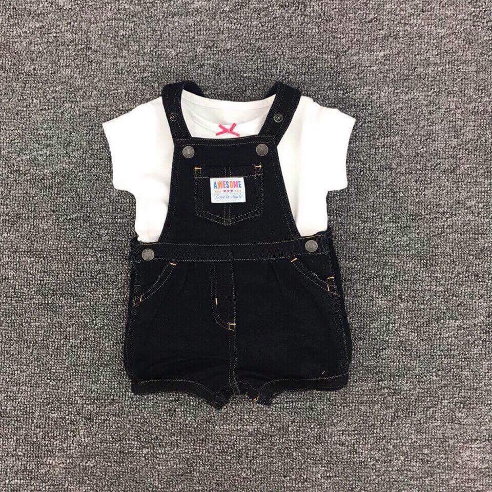 Thời trang trẻ em & trẻ sơ sinh > Quần áo bé gái > Đồ liền thân || SET yếm chất vải jeans kèm áo thun trắng tay ngắn dành cho bé gái