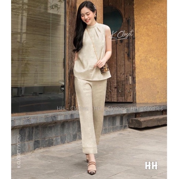Giới thiệu Set yếm đũi hở lưng quần ống rộng đũi xước be siêu hot HN873
