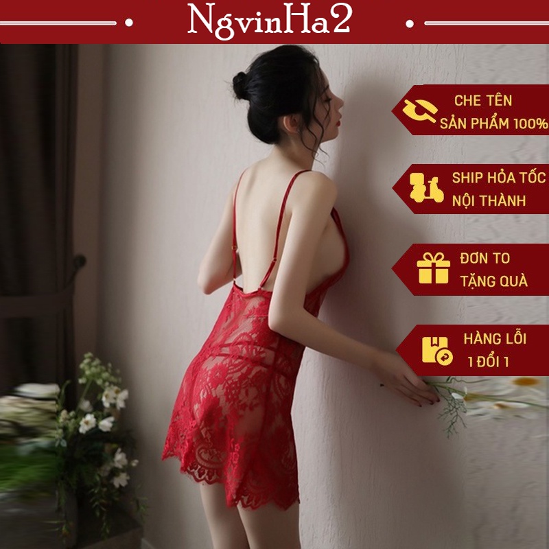 Giới thiệu Đồ Sgủ Sexy Nữ Hở LưngĐầm Ngủ Cosplay Cao Cấp Hai Dây Ren Phối + Quần Lót
