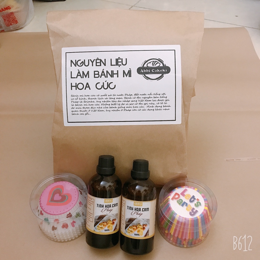 Nguyên liệu trong Combo bao gồm: - Bột mì số 13: 1kg - Sữa không đường: 440ml - Nước hoa cam: 100ml - Men nở: 50g Để có thể làm bánh mì hoa cúc thành công, nàng cần chuẩn bị thêm đường trắng, bơ nhạt và trứng gà nữa nhé. Vì set này bên tớ dành riêng cho khách ship tỉnh, không ship theo bơ nhạt được ấy.