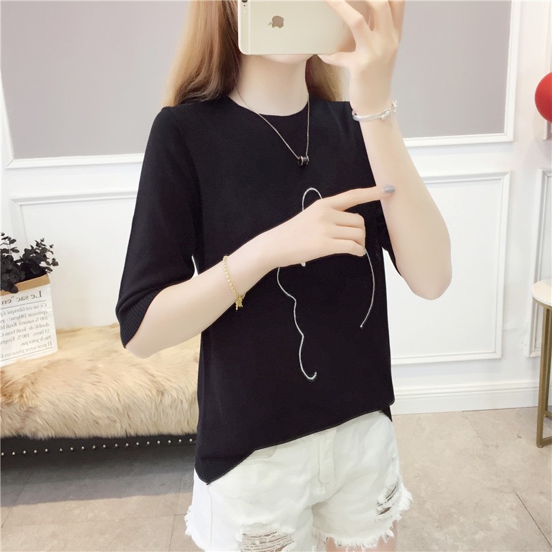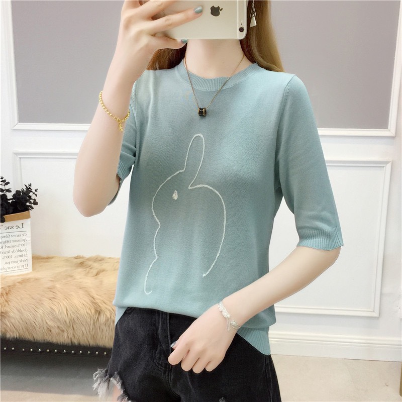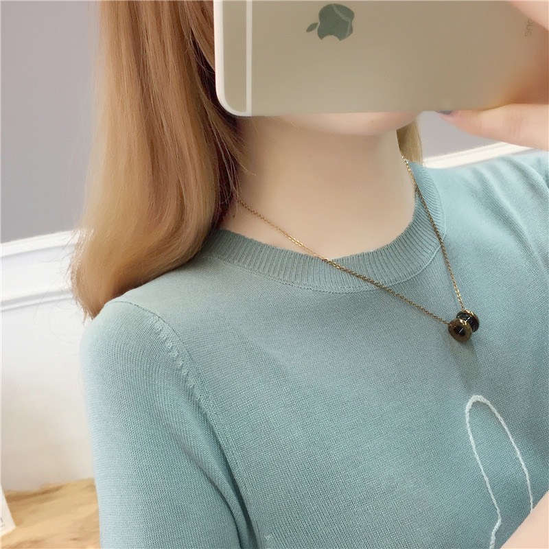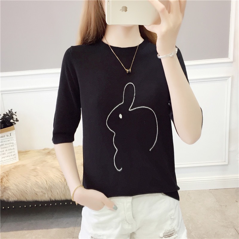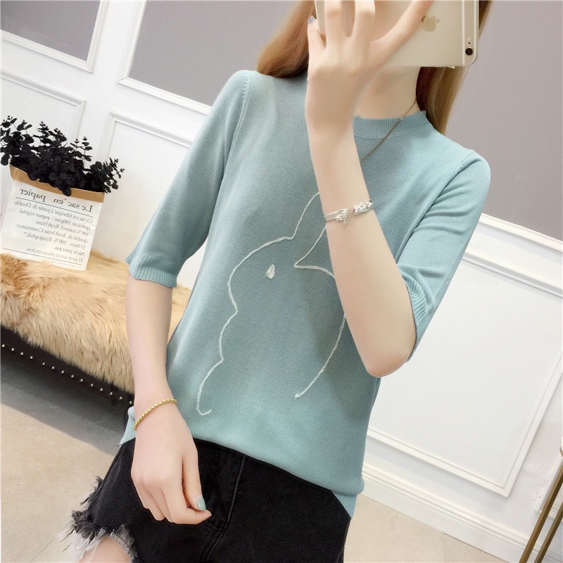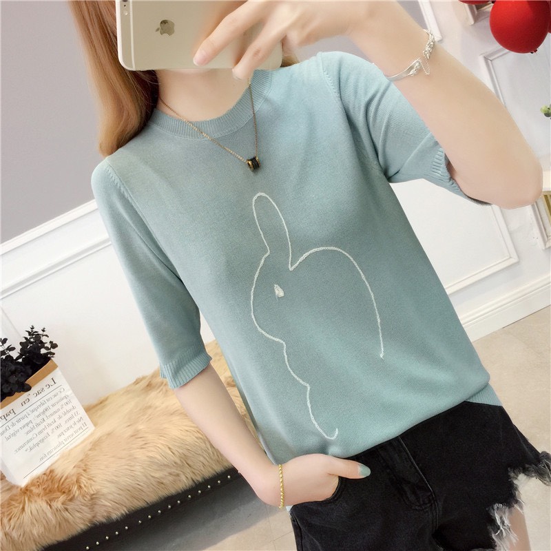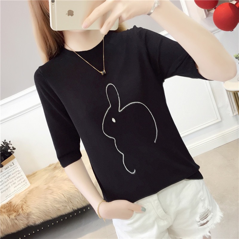 Áo Len Nữ Đẹp Duyên Dáng Kiểu Áo Len Mỏng Dáng Ngắn , Tay Ngắn Thêu Hình Con Thỏ - THỜI TRANG THU ĐÔNG SHOPPRO 2116