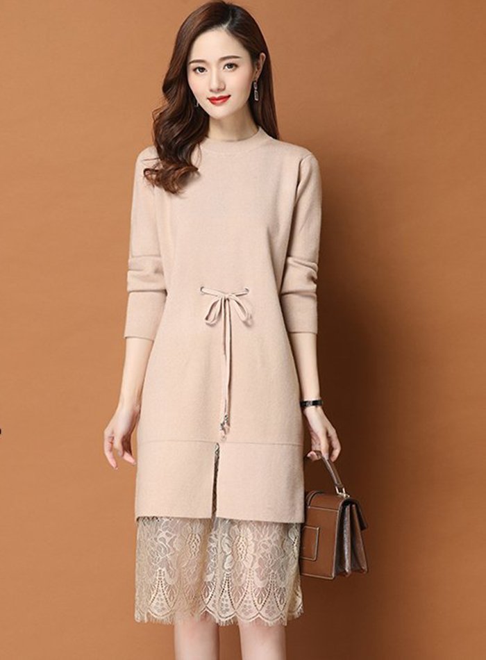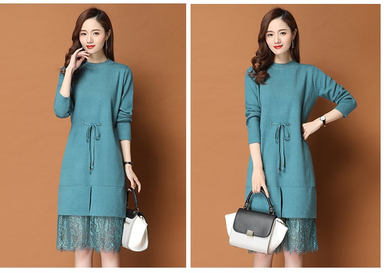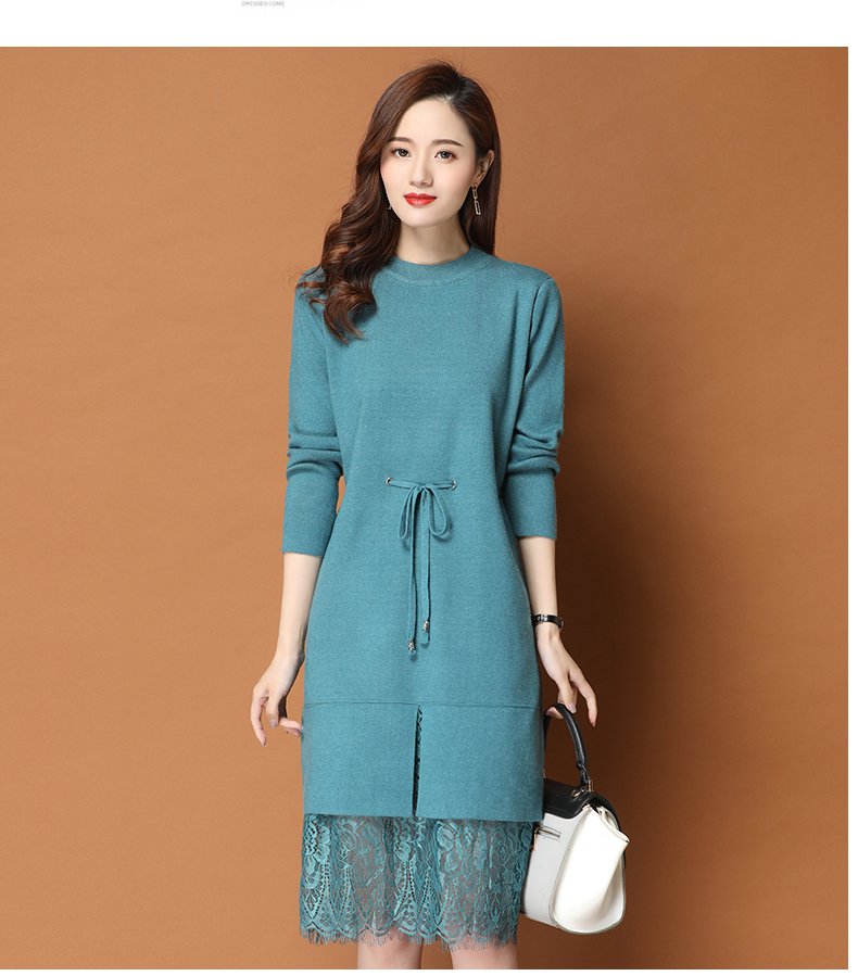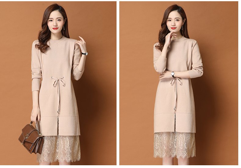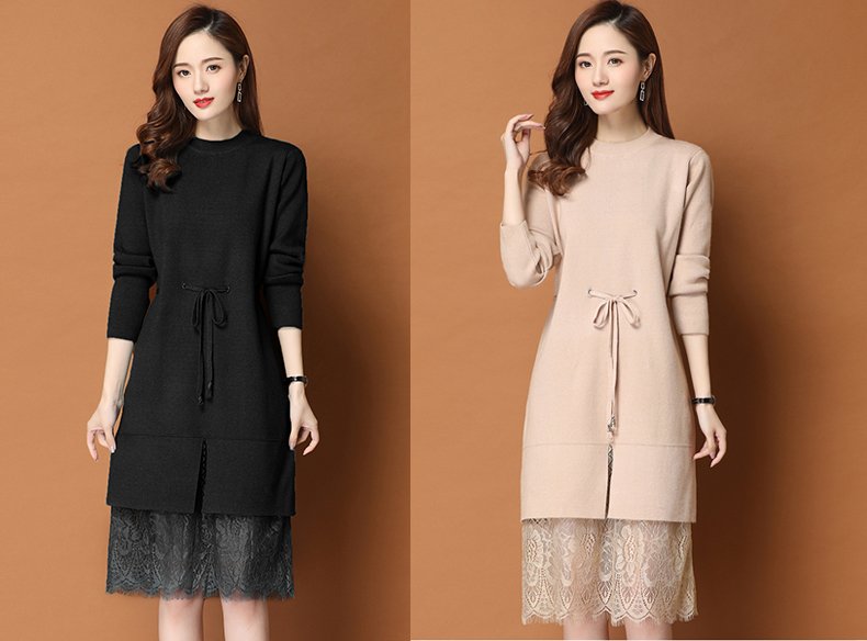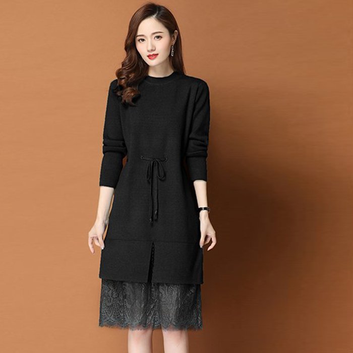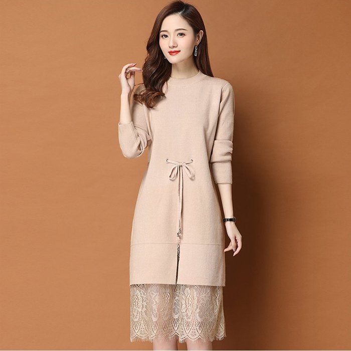 SHOPPRO - Đầm Len Nữ Tính Dạo Phố Dáng Suông Kiểu Đầm Len Rút Eo Phối Ren 2145