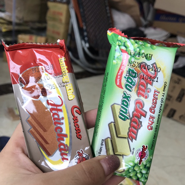 Thực phẩm và đồ uống > Các loại bánh > Khác || Sỉ 10 gói lương khô Hải Châu 2 vị ( đậu xanh và ca cao)