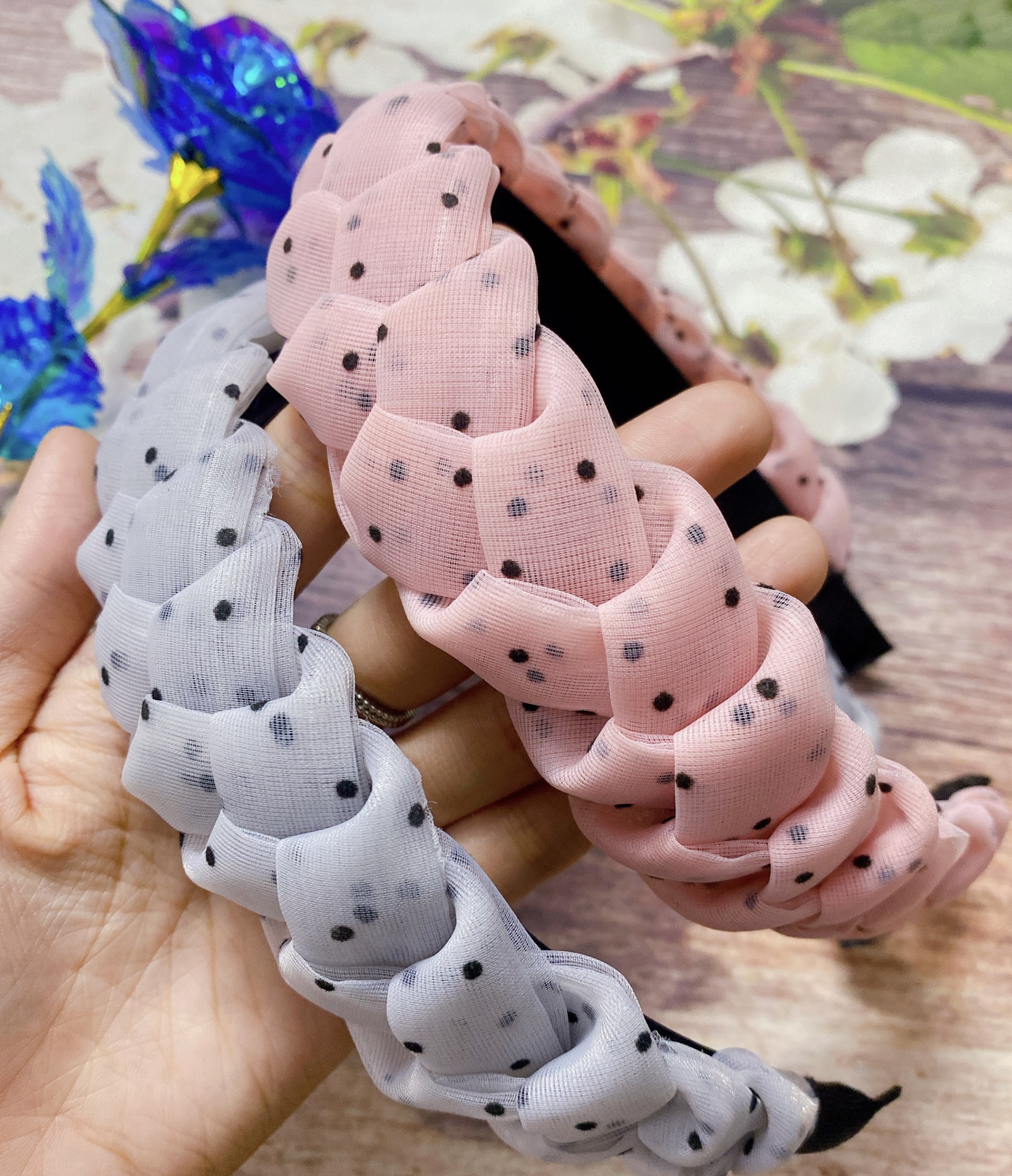 (Sỉ 3) Băng Đô Cài Tóc Nữ Vải Voan Chấm Bi, Cài Bờm Thắt Bím Tiểu Thư Thời Trang Hàng Đẹp