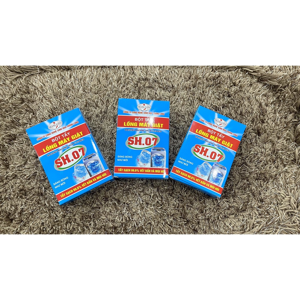 [ SỈ 3 HỘP ] TẨY LỒNG MÁY GIẶT SH07 -1 hộp 2 gói - Khử mùi, vệ sinh máy giặt - Không hiệu quả hoàn tiền - Hàng CHÍNH HÃNG (1 hộp gồm 2 gói x 100gr/gói) Tổng 3 hộp: 6 gói. ✅ Đánh bật mảng bám lâu ngày trong lồng máy, Tẩy sạch mọi vết bẩn ✅ Khử mùi hôi, diệt vi khuẩn lồng máy tới 99% ✅ Giữ cho lồng máy sáng bóng lồng inox, sạch lồng nhựa. ✅ Đơn giản dễ sử dụng, tự làm tại nhà ✅ Dùng được cho cả máy giặt cửa trên và máy giặt cửa dưới. ✅ Đặc biệt ngăn ngừa vi khuẩn bám lại trong lồng máy, giữ quần áo không ám mùi hôi máy giặt.