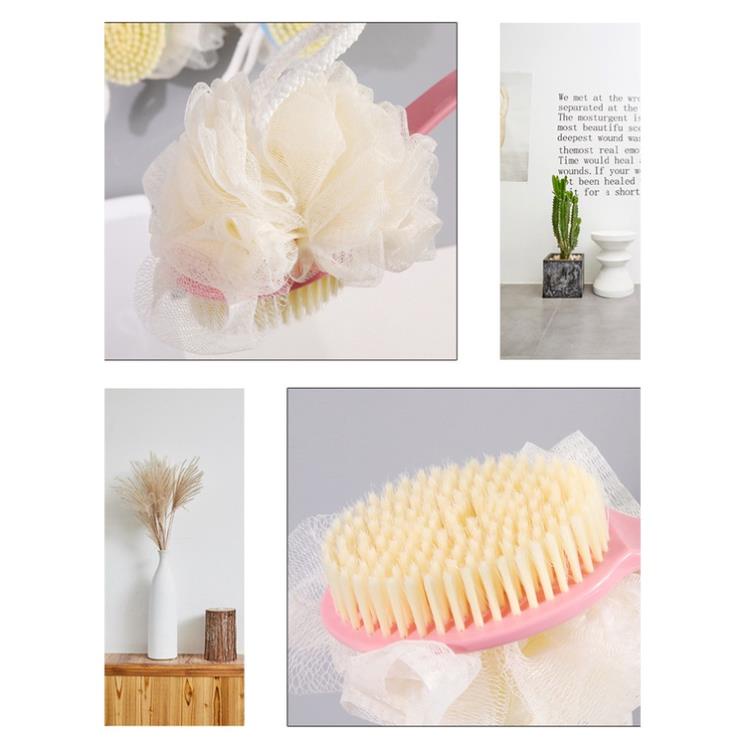 Cây Bàn Chải Cọ Lưng 2 đầu có bông tắm kèm chà lưng hai đầu , tẩy tê bào chết Đa Năng