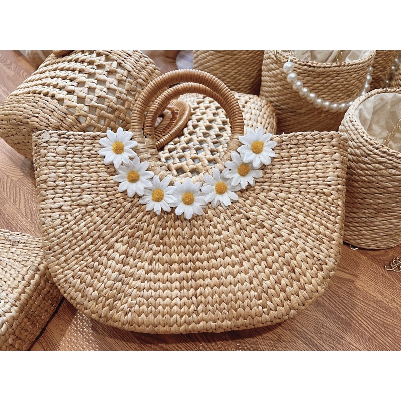 Túi cói túi lục bình dùng để làm phụ kiện chụp ảnh quần áo, đi biển, đi du lịch đều rất đẹp