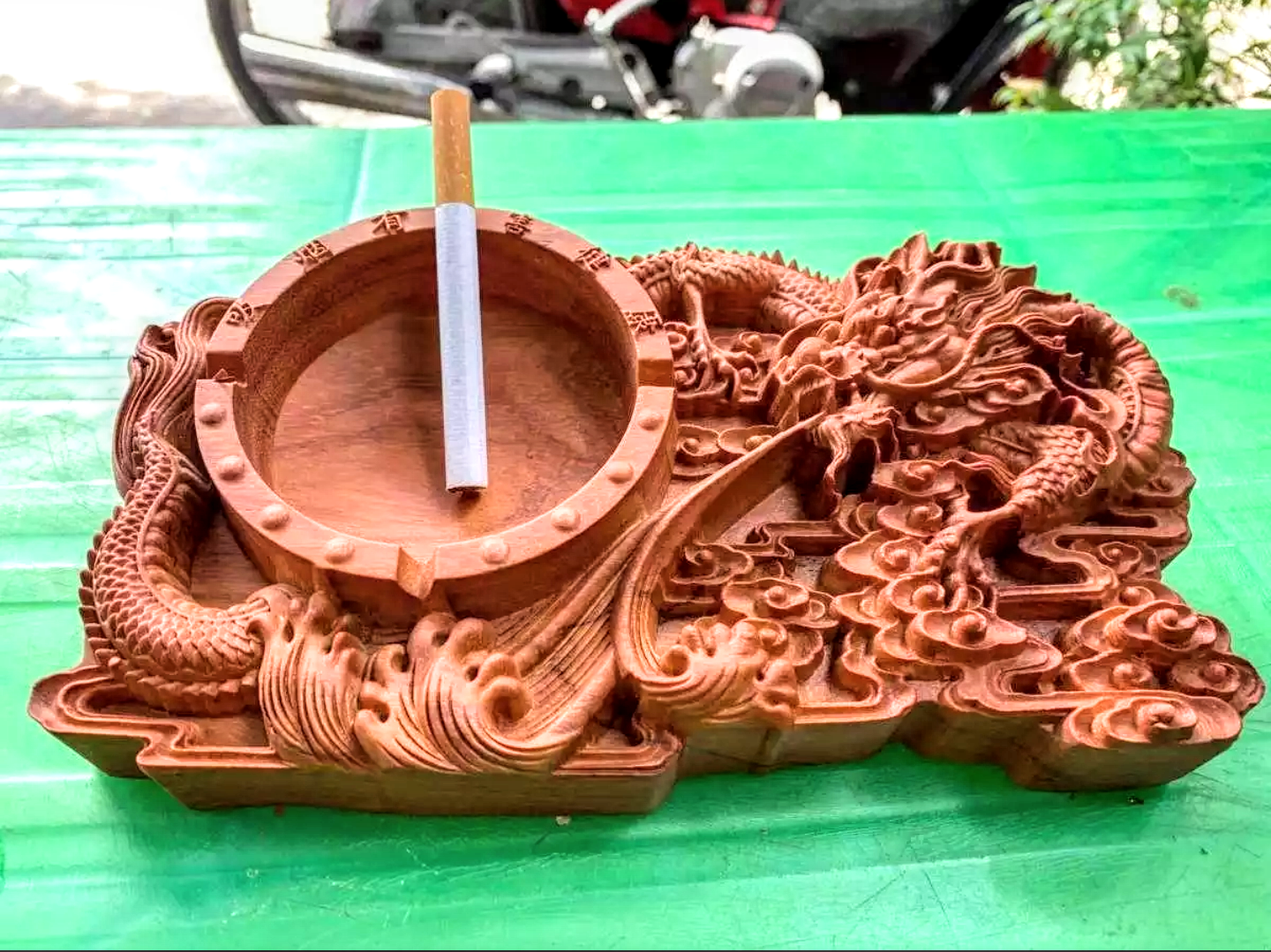 GẠT TÀN thuốc gỗ hương chuẩn trạm khắc RỒNG tinh xảo