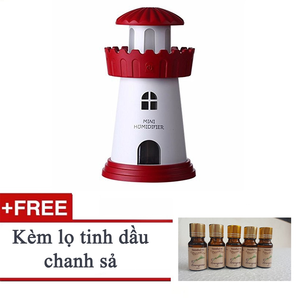 Giới thiệu [Siêu Hot] Máy xông tinh dầu kiêm đèn ngủ Lighthouse Humidifier - Tặng Kèm tinh dầu chanh sả