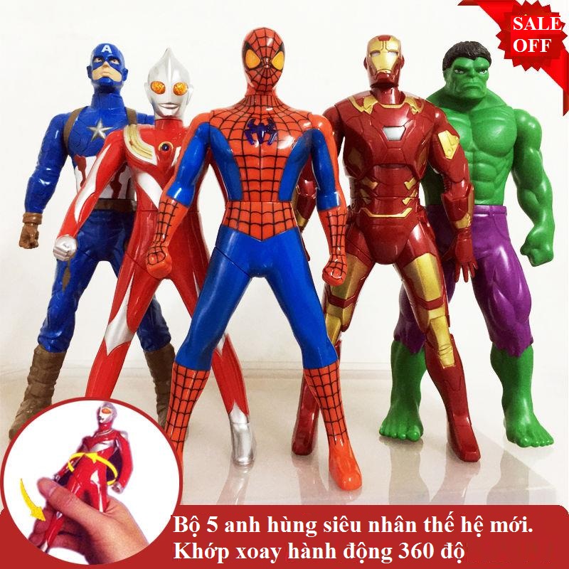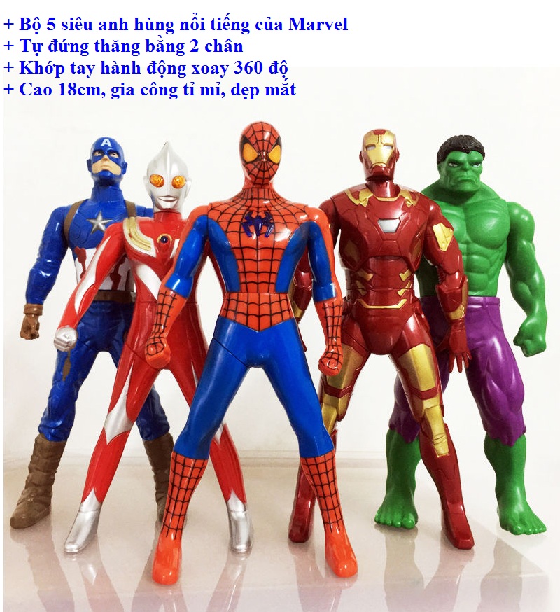 Đồ chơi siêu nhân-Mô hình năm anh em siêu nhân-Combo 5 nhân vật Marvel, DC-Khớp xoay linh hoạt-Tự đứng thăng bằng