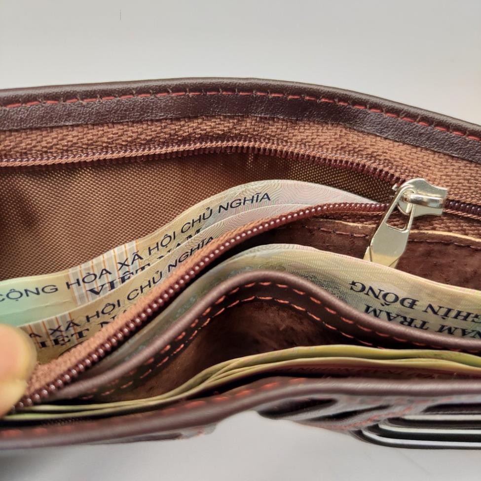 - Số ngăn: 1 ngăn chính, 1 ngăn khóa kéo và nhiều ngăn phụ sắp xếp khoa học để đựng thẻ ATM, CMND và nhiều vật dụng khác.