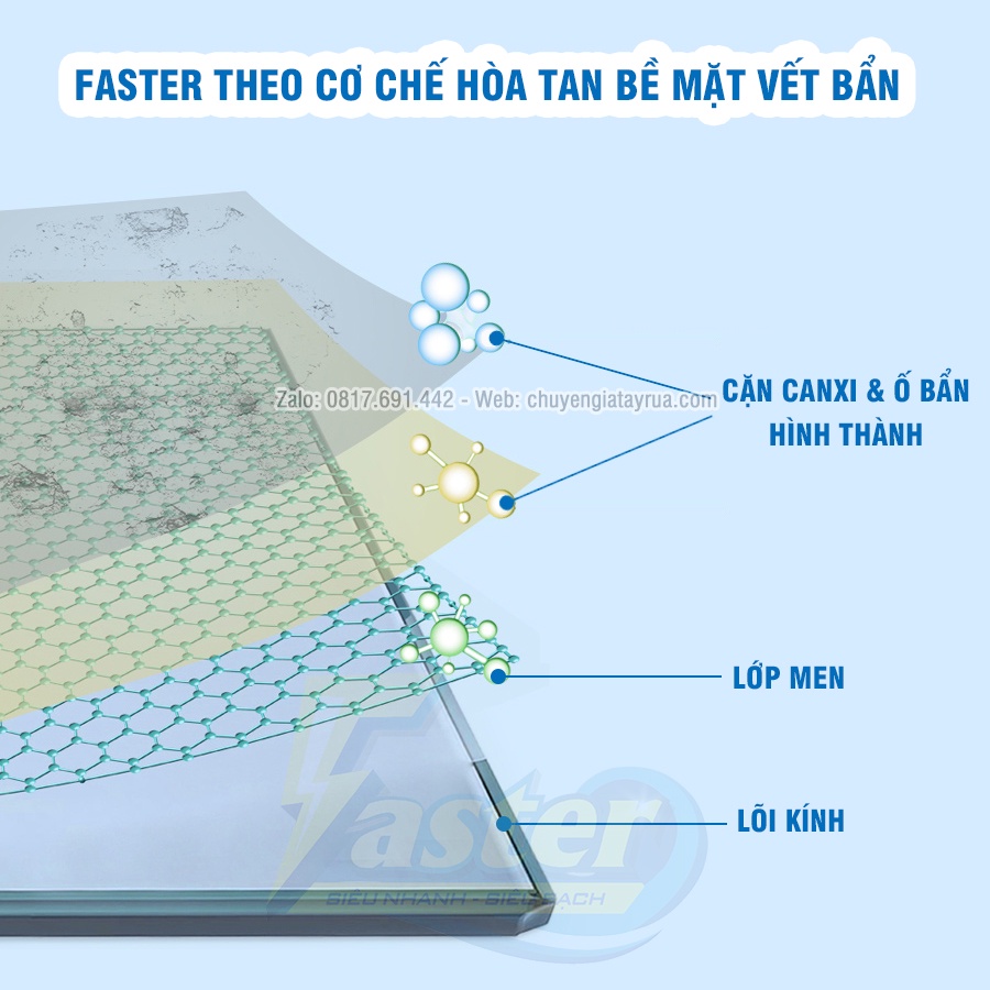 Giới thiệu (Siêu Sạch) Combo Nhà Tắm: Tẩy Cặn Canxi Trên Kính, Tẩy Trắng Bồn Sứ & Tẩy Inox Bám Cặn, Ố Gỉ Faster 500ml