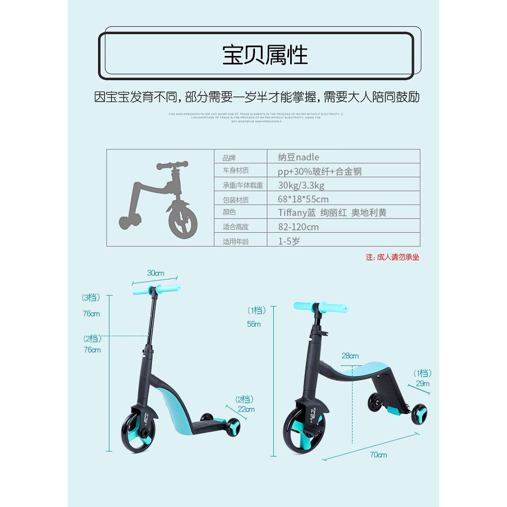 ======================== * * THÔNG TIN SẢN PHẨM - Siêu xe Nadle 3 trong 1 TF3 gồm có: 1 xe chòi chân - scooter, HDSD - Màu sắc: màu Xanh (TF3-11218B) , màu Vàng (TF3-11218Y), màu Đỏ (TF3-11218R) - Chất liệu: Nhựa PP, Kim loại - Thương hiệu: Joovy - Kích thước sản phẩm: 70x29x76 cm - Kích thước đóng hộp: 68x18x55 cm - Cân nặng: 3400gr - Bảo hành: 12 tháng - Sản xuất tại: Trung Quốc