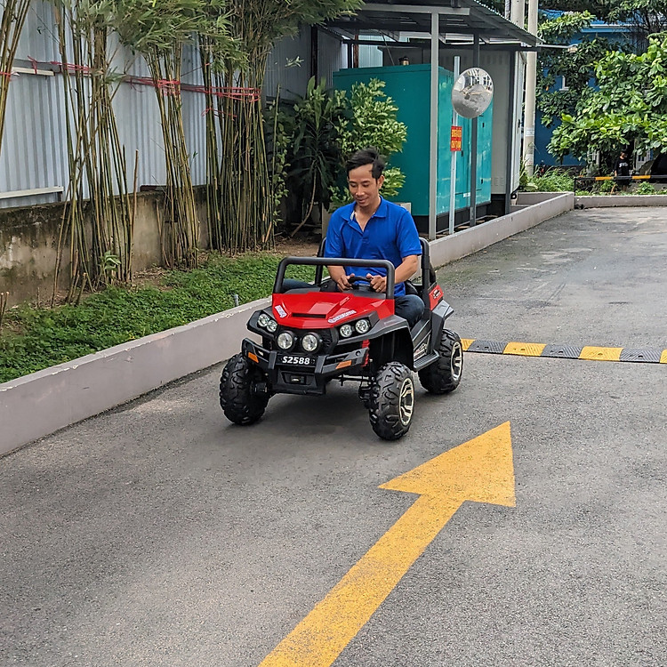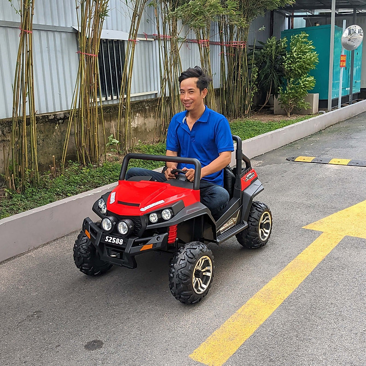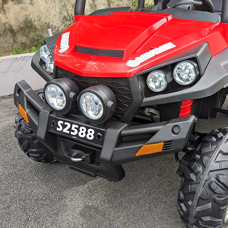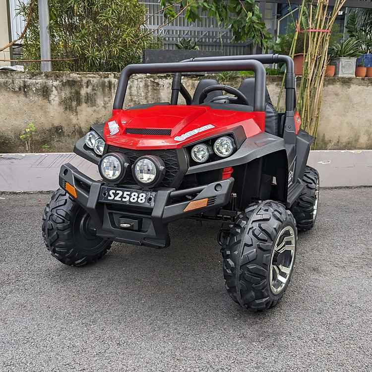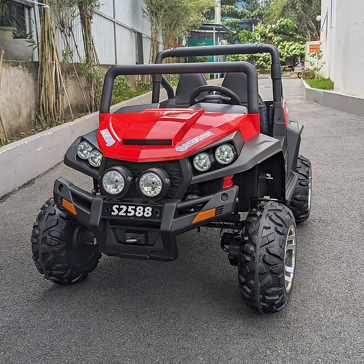 - S2588 thiết kế với kiểu dáng một chiếc xe Jeep đời mới, mui trần, phóng khoáng, khung xe chắc chắn, chịu va chạm tốt, vỏ xe được làm bằng nhựa chất lượng cao, cực kì an toàn cho bé.