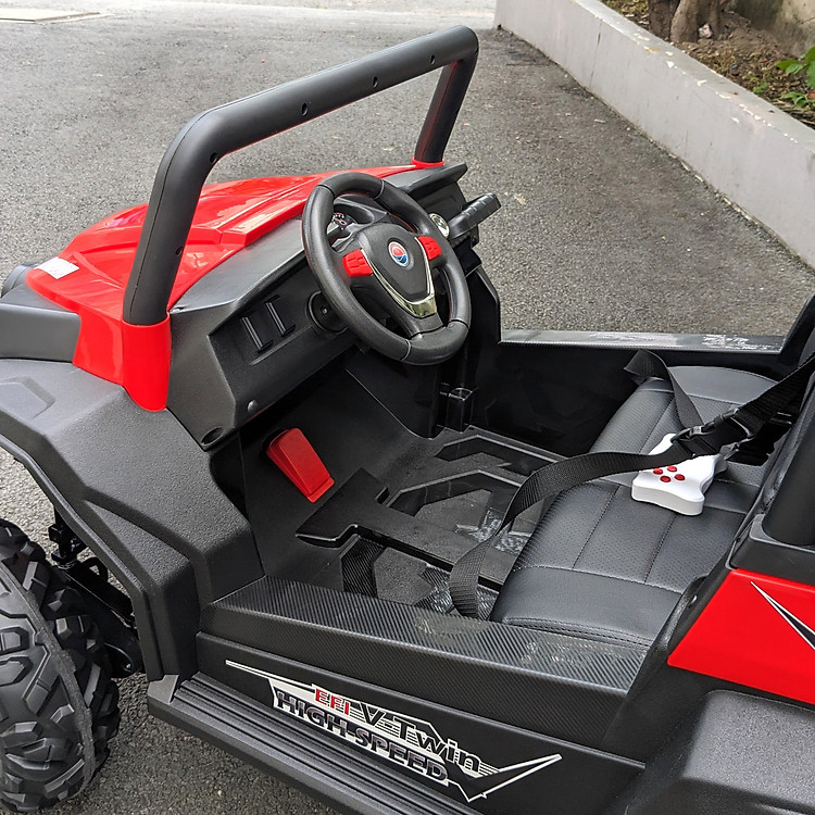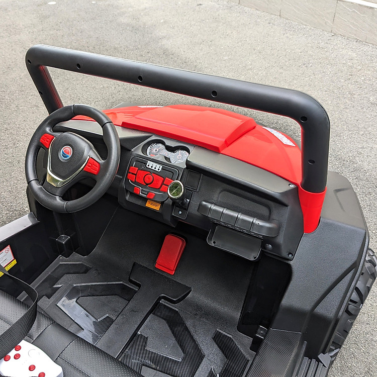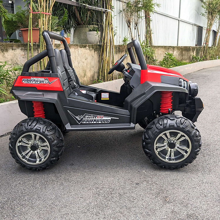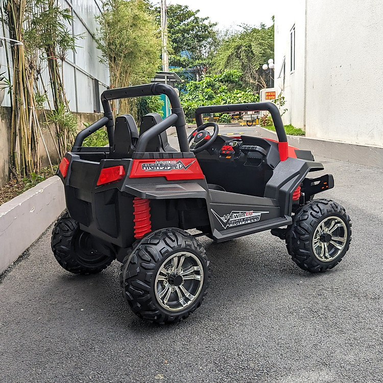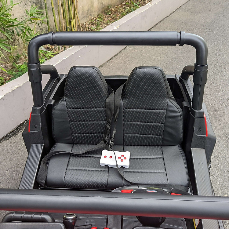 - Thiết kế khung xe cực lớn, chắc chắn, có thể cho 2 bé ngồi chơi chung, 2 ghế ngồi rộng rãi bằng da, bé ngồi thỏa mái và êm ái cho dù chơi lâu.