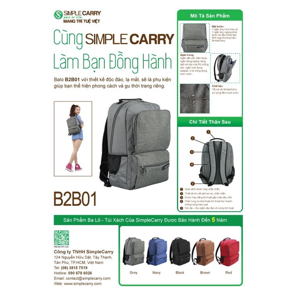 Giới thiệu [SIMPLE CARRY CHÍNH HÃNG] Balo laptop 15 inch Hàn Quốc SIMPLE CARRY B2B01 MÀU XANH NAVY siêu nhẹ chống nước bảo hành 10