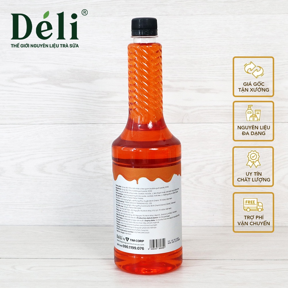 Giới thiệu Siro bubble gum Déli 350ml [VỊ NGỌT THANH DỊU] HSD:12 tháng, nguyên liệu pha chế trà trái cây, soda, làm thạch rau câu,.