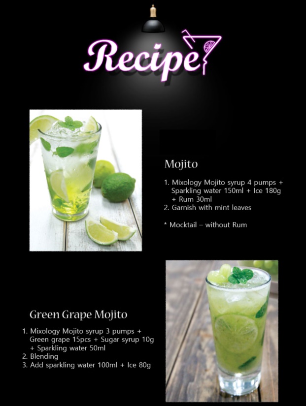 Thành phần | Đường trắng, nước tinh khiết, sirô bắp giàu fructose, nước ép chanh cô đặc 5% (nước chanh 46%, sản phẩm của Isarael), chất điều chỉnh độ acid: Acid citric (330), Trinatri citra (331(iii)), hương nhân tạo (hương cocktail Mojito – hương rượu rum, chanh, bạc hà), chất tạo ngọt nhân tạo: Sucralose (955), chất bảo quản: Kali sorbat (202), phẩm màu nhân tạo: E133. |