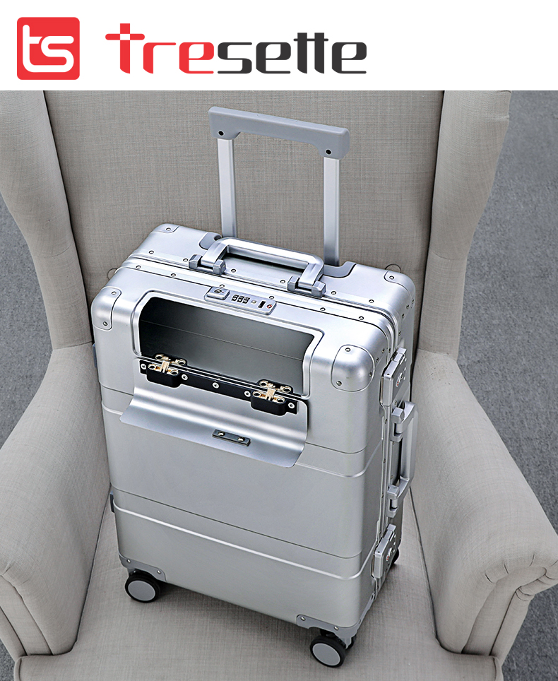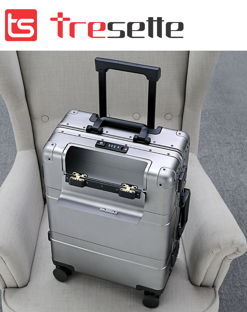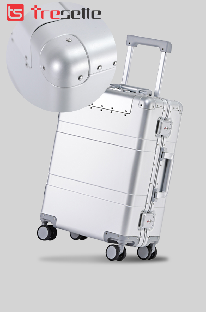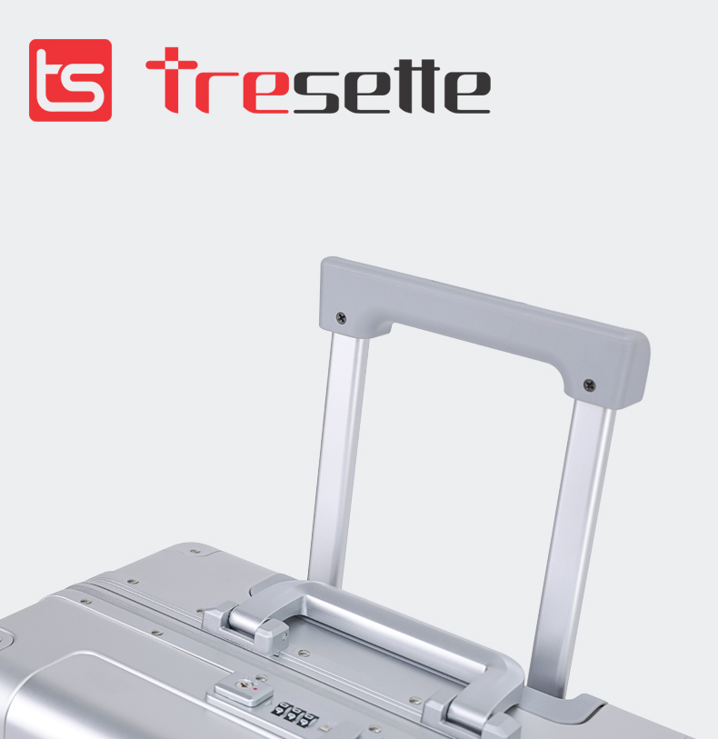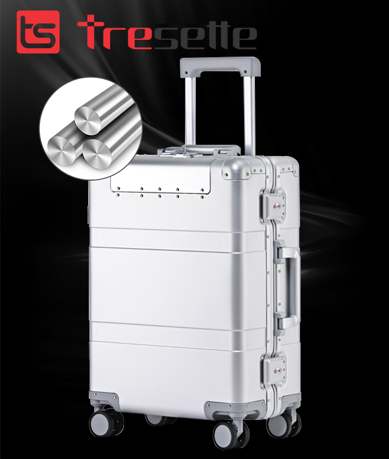 Toàn bộ thân vỏ vali Tresette làm bằng hợp kim nhôm Magie Làm cho vali rất nhẹ, độ đàn hồi cao, chống ăn mòn, chịu được tải trọng lớn