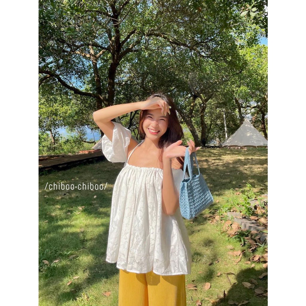 Giới thiệu [SM11] Áo Trễ Vai 2 Dây, Áo Trễ Vai Bèo Tay Phồng Rộng, Hoạ Tiết Hoa Trắng March.Clothes