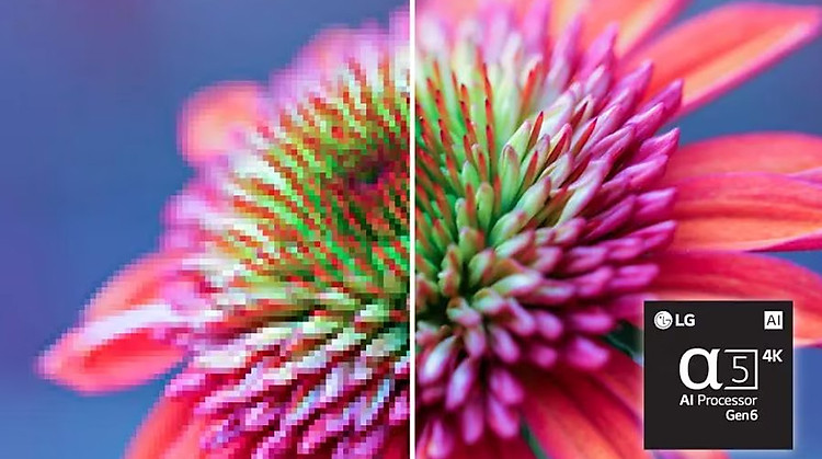 - Bộ xử lý α5 Gen6 4K AI với sự hỗ trợ từ trí tuệ nhân tạo Al nâng cao chất lượng hình ảnh, phát hiện ánh sáng trong phòng tự động điều chỉnh độ tương phản, màu sắc của hình ảnh đến mức thiết lập tối ưu. Đồng thời cải thiện chất âm cho trải nghiệm của người dùng thêm chân thật.