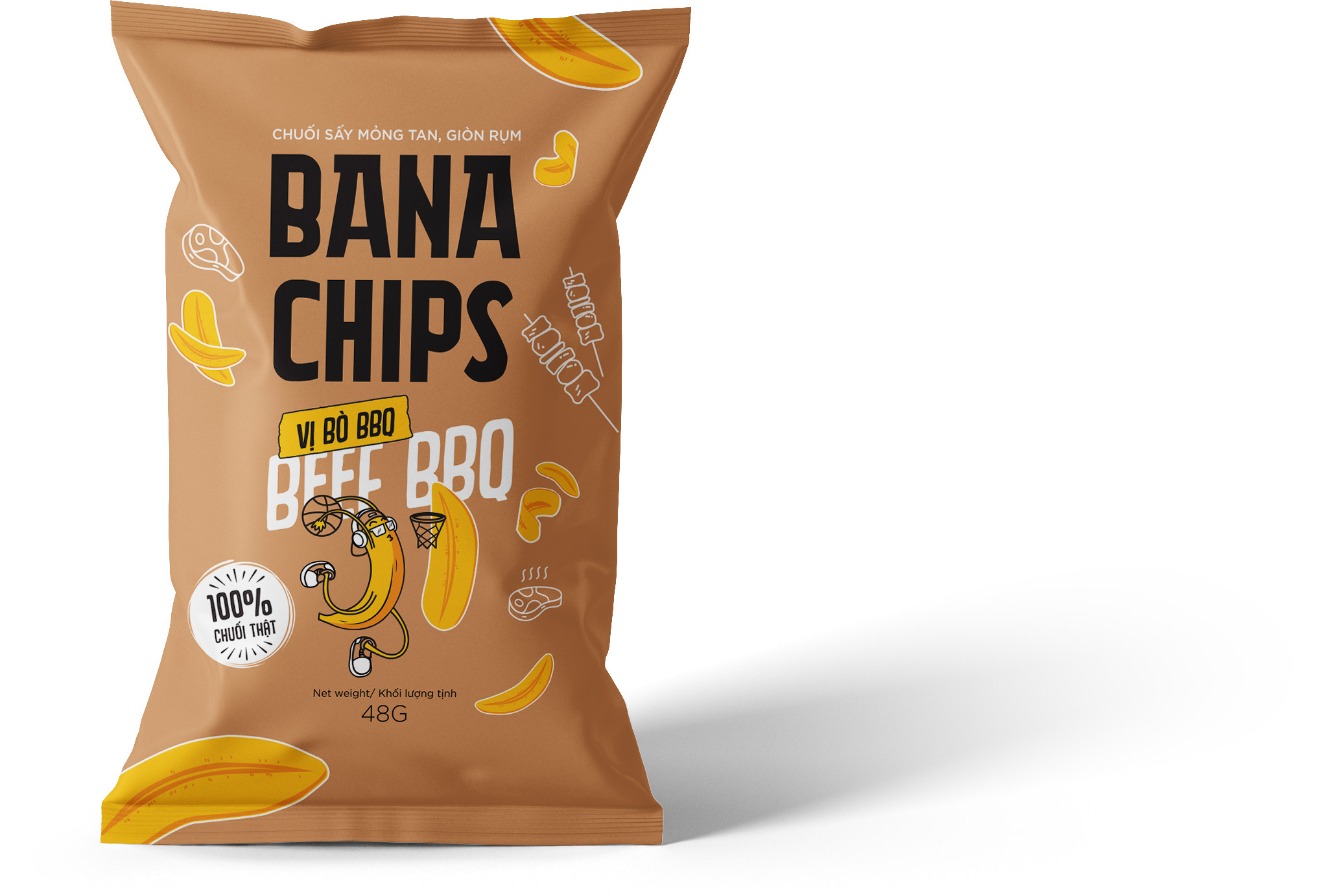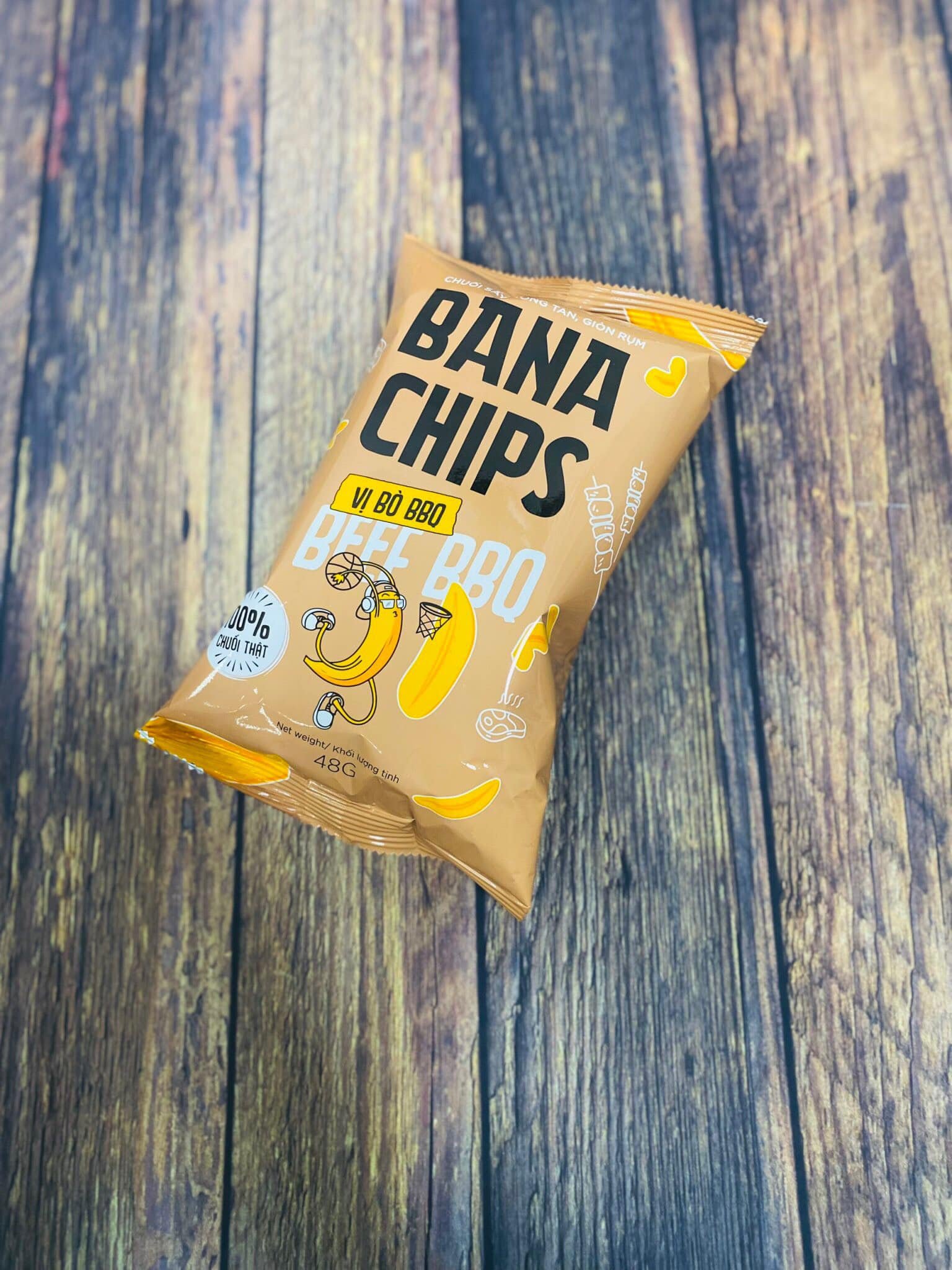 Thành phần | Chuối tươi (85%), dầu thực vật, bột gia vị BBQ (7%) (đường, muối, tỏi, hành, ớt, chất điều vị, bột tương đậu nành, bột hải sản..) |