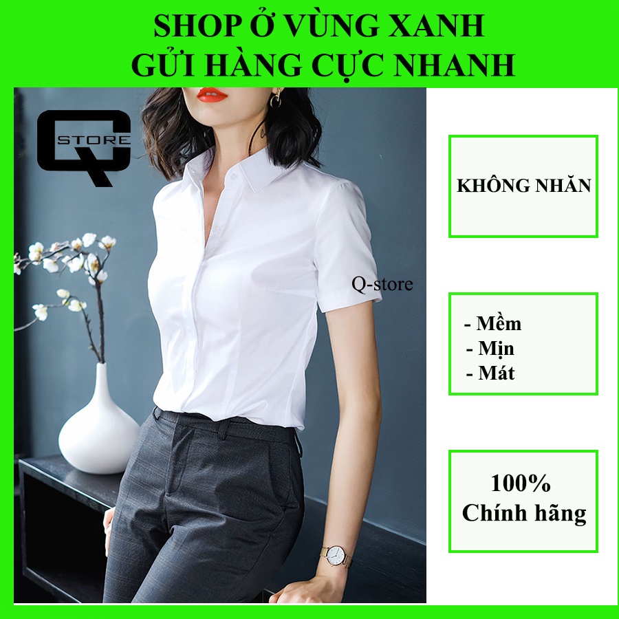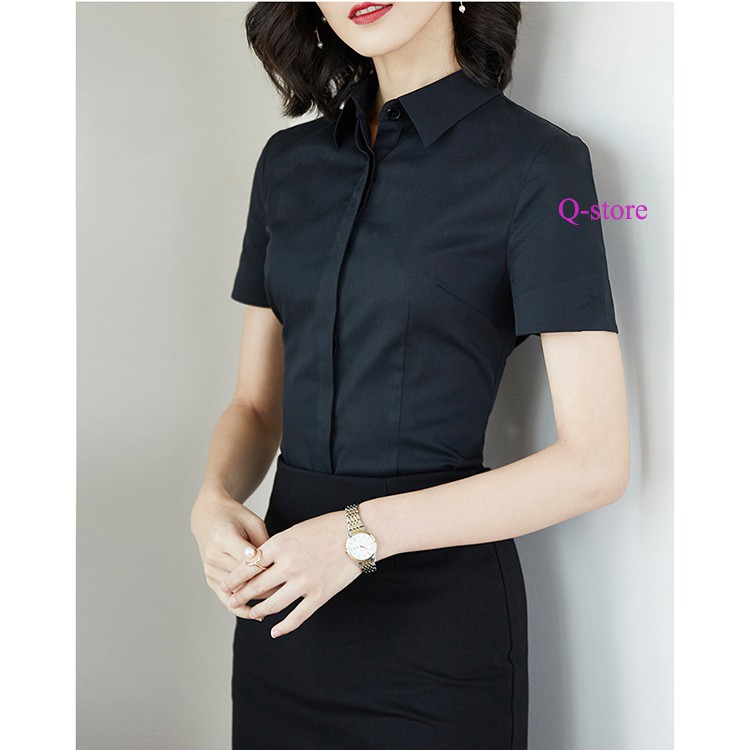 Áo sơ mi nữ tay ngắn thiết kế đơn giản kiểu dáng thời trang - Áo sơ mi nữ công sở nữ ngắn tay