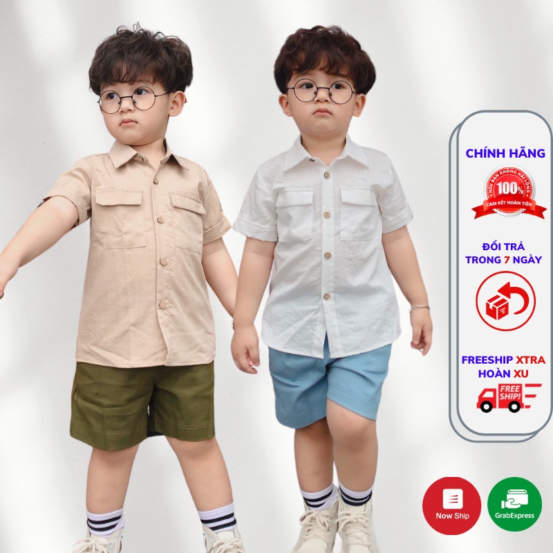 Bộ sơ mi đũi bé trai cổ vest mềm mịn thấm hút mồ hôi - Set bộ bé trai chất liệu đũi mềm cao cấp sành điệu
