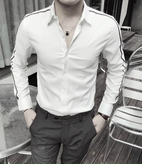 Thiết kế Sơ mi nam trắng viền vai và tay thời trang cao cấp phong cách đường may tỉ mỉ.
