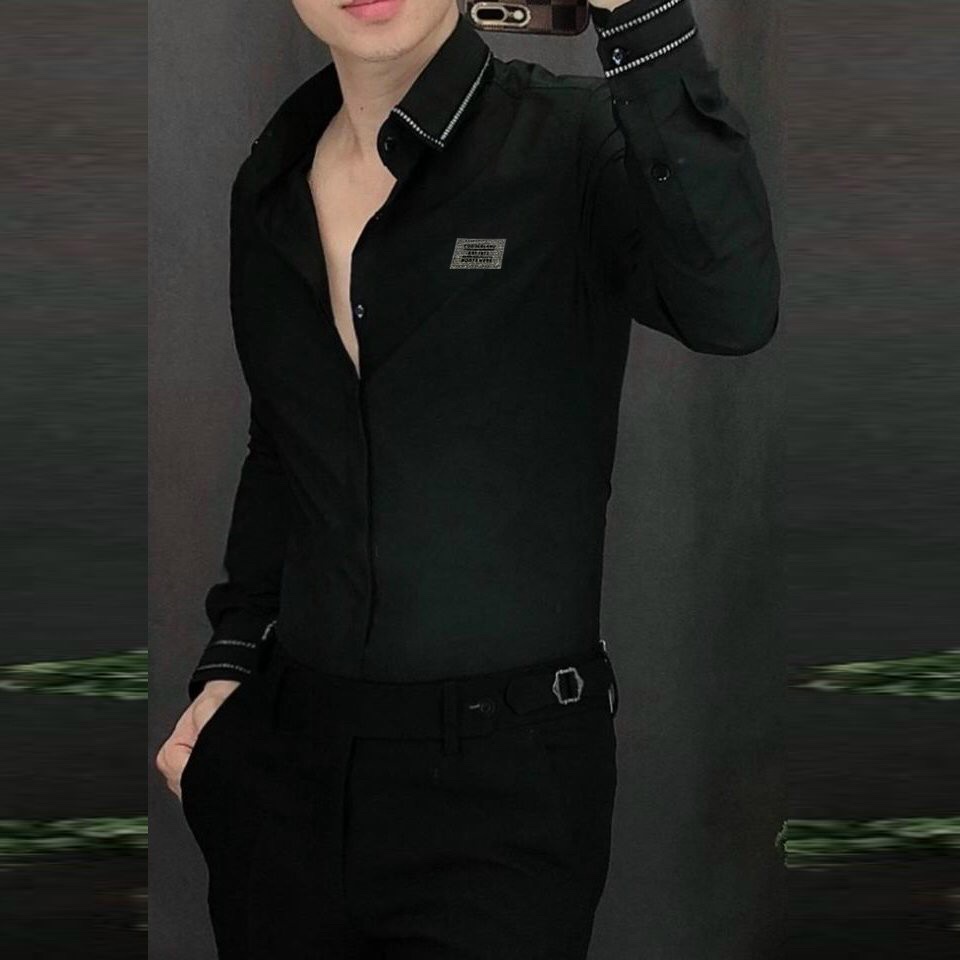 Thiết kế Sơ mi nam viền cổ đen trắng họa tiết vương niệm thời trang cao cấp phong cách đường may tỉ mỉ.