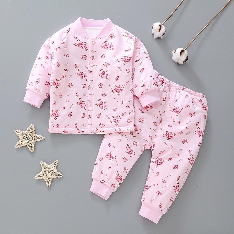 Những thiết kế chuyên biệt như: Cúc bấm tròn, vạt cài chéo, quần đáp đũng,... càng góp phần hoàn thiện bộ trang phục của bé thêm trọn vẹn.