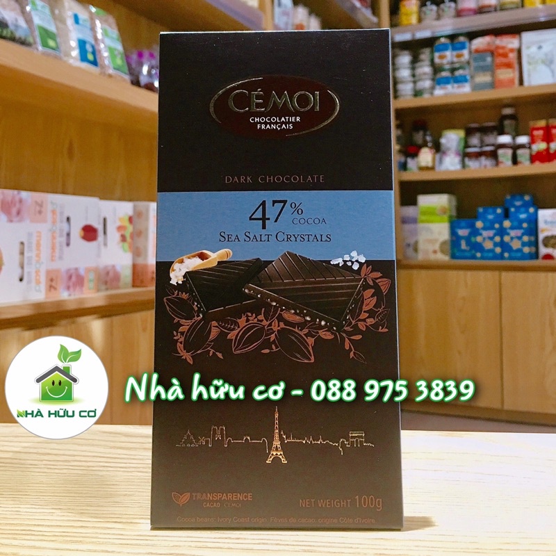 Socola đen vị muối biển 47% cacao dạng thanh Cémoi 100g - Date: 31/12/2023