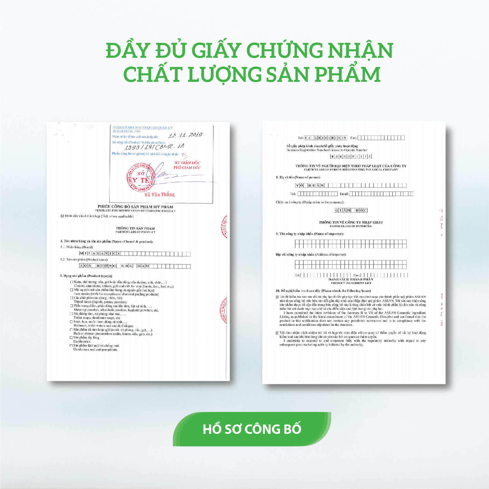GIẤY CHỨNG NHẬN TỪ BỘ Y TẾ CẤP PHÉP SỬ DỤNG AN TOÀN, HIỆU QUẢ, ĐƯỢC LƯU HÀNH