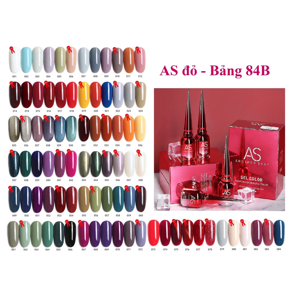 Sơn Gel AS cao cấp (mã 84B) gồm 84 chai | chai đỏ Tặng Base, top,  bảng màu + sổ móng