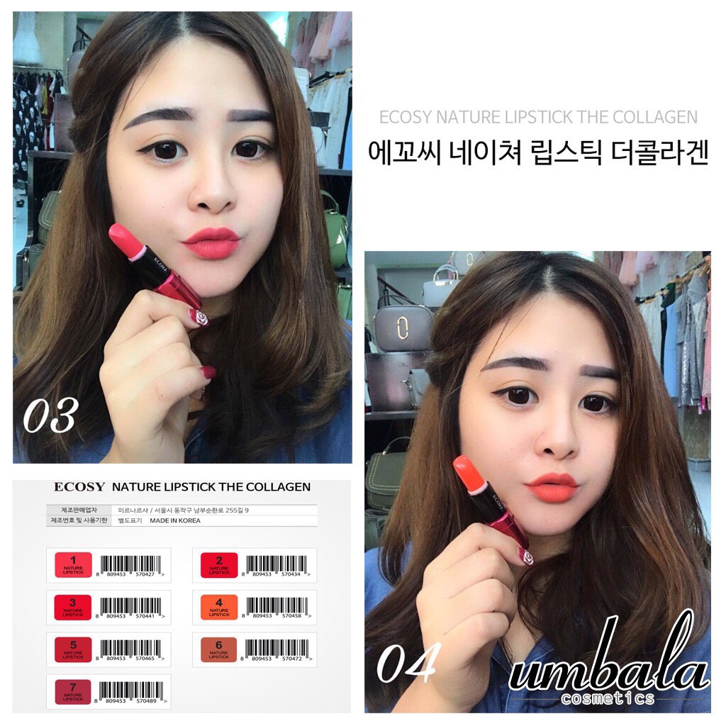 Son lì ECOSY Hàn Quốc màu chuẩn đẹp ***************** Son lì ECOSY cao cấp mẫu mới nhất Son chứa tinh chất Collagen có tác dụng dưỡng ẩm cho làn môi mịn màng, tăng độ đàn hồi và giúp bờ môi căng mọng, quyến rũ trong suốt thời gian sử dụng mà không lo thâm môi. Không chỉ dừng lại ở đó, Son lì Collagen Ecosy Cao Cấp với kết cấu đặt biệt giúp chất son mềm mượt, màu son lên môi chuẩn tự nhiên và bền màu nhiều giờ liền.