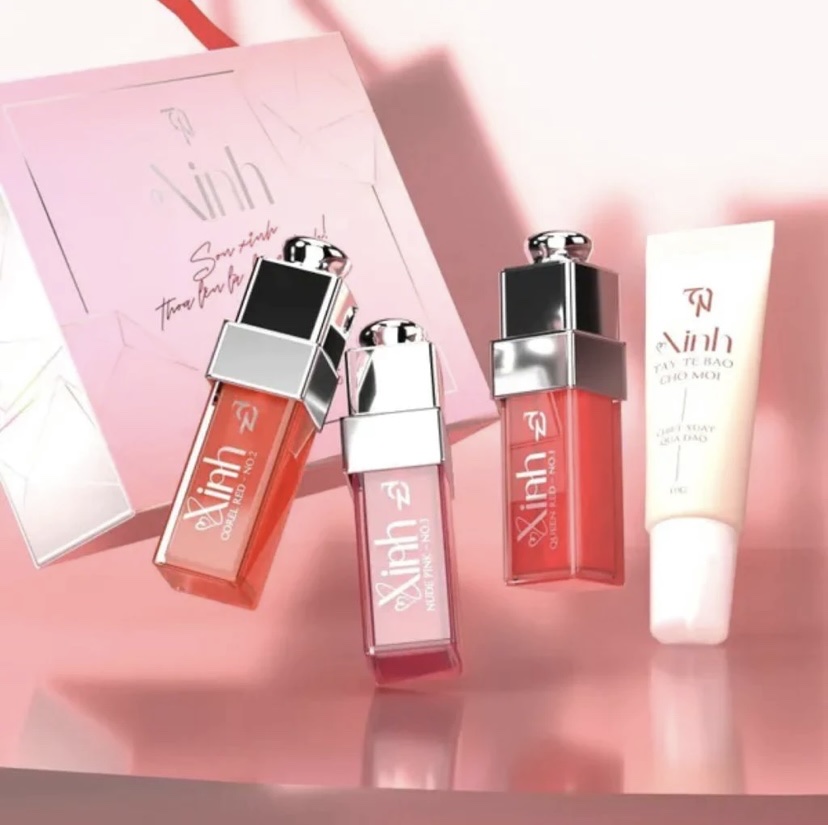 - Chất son xinh Đông Anh không gây cảm giác nứt nẻ khô môi, vô cùng mềm mịn, bền màu sau nhiều giờ sử dụng. Bờ môi luôn căng mọng, tươi mới, quyến rũ như vừa mới son. Đặc biệt với mỗi set son xinh Đông Anh còn được tặng kèm 1 tẩy tế bào chết môi.