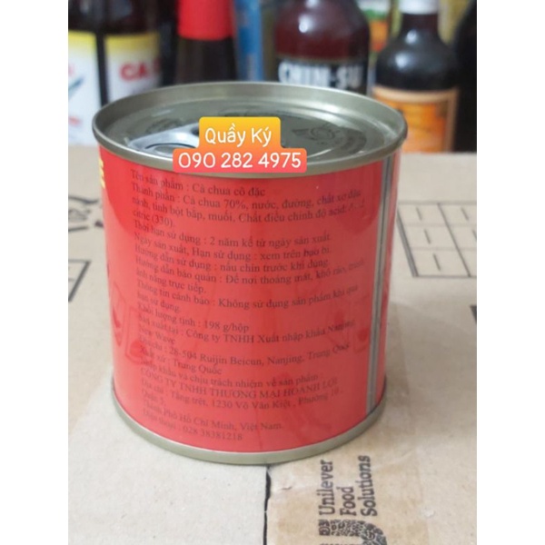 SỐT CÀ PASTE MINH CHÂU - 198GR •Cà chua cô đặc Tomato Paste •Trọng lượng hộp 198gr •Thương hiệu Minh Châu •HSD : 2 năm kể từ ngày sản xuất •Sản xuất: Trung quốc •Được chế biến từ những quả cà chua tươi ngon, sản phẩm an toàn cho sức khỏe người sử dụng. Cà chua cô đặc mang lại cảm giác thú vị cho người thưởng thức, bạn có thể chế biến thành nhiều món ăn ngon như: nấu súp, làm nước sốt cà trong các món chiên, xào... •Cà chua cô đặc là một món ăn ngon miệng đồng thời hỗ trợ ngăn ngừa nguy cơ gây ung thư, nâng cao sức đề kháng, giảm béo phì, hỗ trợ hệ tim mạch, hệ tiêu hóa, giảm cholesterol trong máu, tăng thị lực, chống lão hóa, giảm các bệnh mỡ máu, tiểu đường... •Sản phẩm còn chứa nhiều dưỡng chất thiết yếu khác có thể giúp tăng cường sức khỏe toàn diện của cơ thể. •Cà chua cô đặc được sản xuất theo công nghệ hiện đại. Mọi khâu từ tuyển chọn nguyên liệu tới chế biến, đóng gói đều diễn ra khép kín dưới sự giám sát và kiểm tra nghiêm ngặt của các chuyên gia về công nghệ thực phẩm. Sản phẩm không chứa hóa chất, chất bảo quản độc hại, đảm bảo an toàn cho sức khỏe người tiêu dùng. ----------------------------------------------
