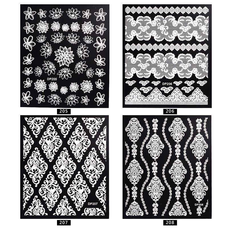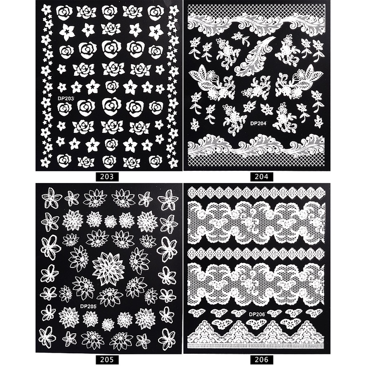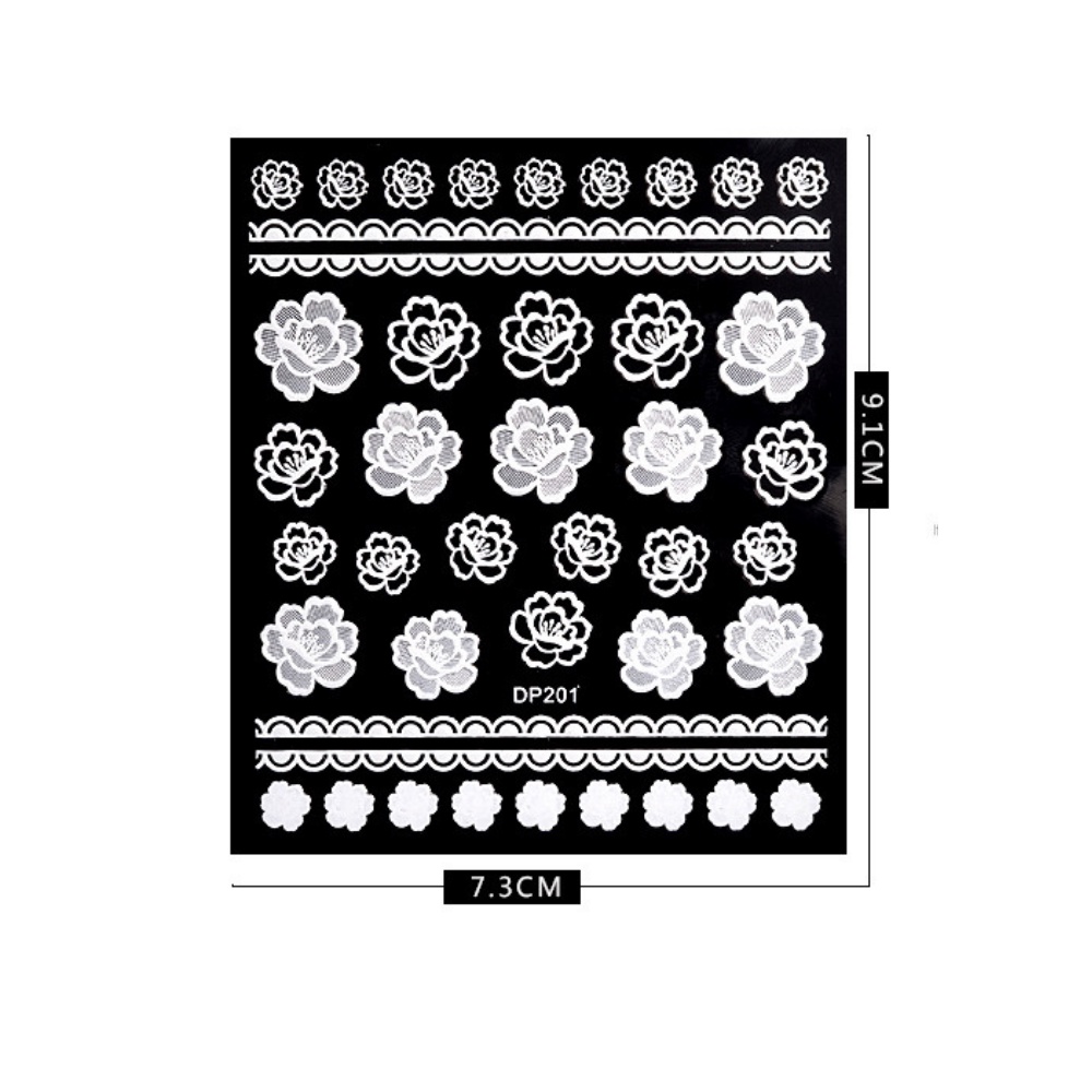 Sticker hoa văn giấy họa tiết trắng nổi 3D , decal sticker hoa dán móng trang trí nail 3d 5d