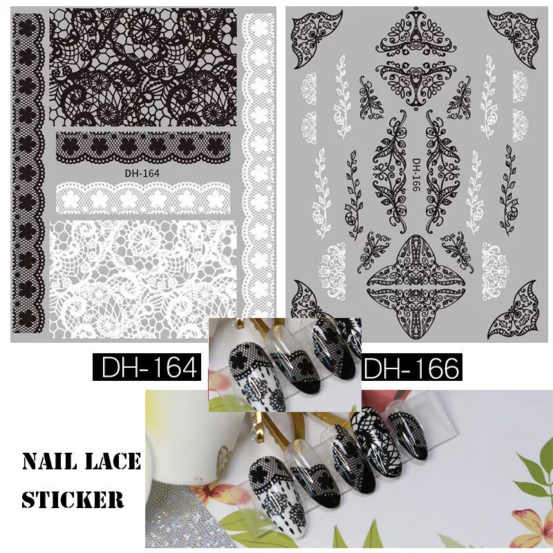 Giới thiệu Sticker Ren Hoa Đen Trắng Dán Móng Tay Rất Đẹp Theo Phong Cách Mới - Lẻ 1 Cái