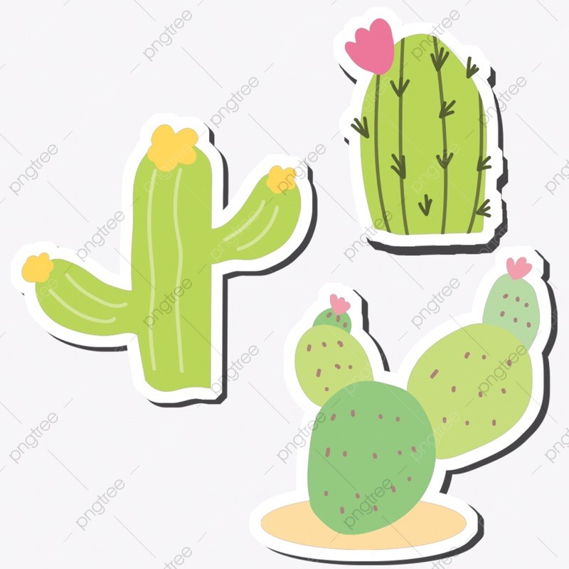 sticker xương rồng sét 30-50 cái ép lụa bóc dán