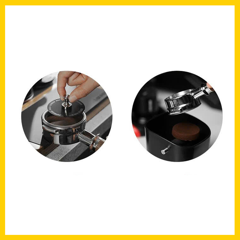 Đế được làm từ caosu có các khe cắm nên có thể gắn được các loại puckscreen phổ biến có size từ 51, 53, 58mm. Có đế này khu vực pha chế của bạn cũng trở nên gọn gàng và thẩm mỹ hơn.