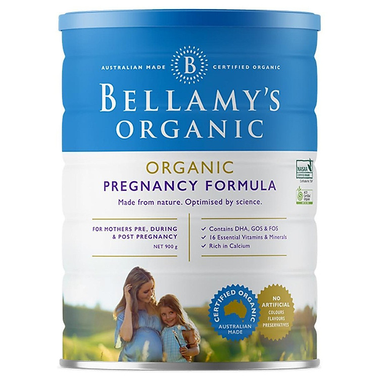 - Sữa Bellamy’s Organic Pregnancy Formula 900g sản xuất tại Úc từ nguồn sữa bò được nuôi dưỡng và cho ăn trên những cánh đồng cỏ không chứa phân bón hóa học và thuốc trừ sâu, đảm bảo không chứa hóc-môn tăng trưởng, không nguyên liệu biến đổi gen.