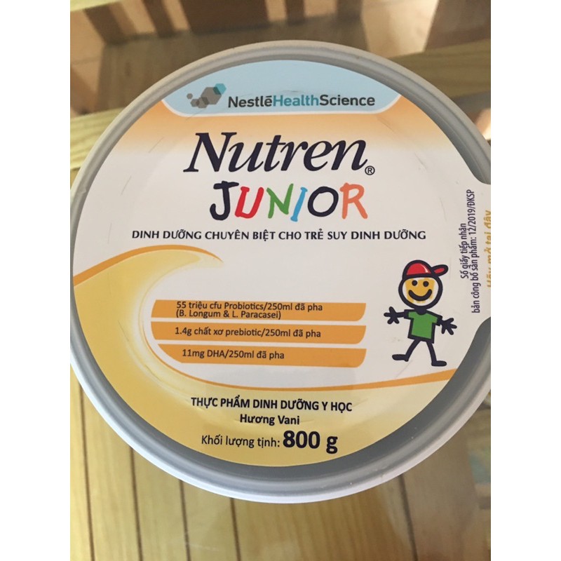 Sản phẩm dinh dưỡng Nutren Junior (800 g) hương Vani Nhập khẩu từ THỤY SĨ. Đạm Whey chất lượng – GIÚP TIÊU HÓA TỐT Probiotics và Prebiotics – TĂNG SỨC ĐỀ KHÁNG Giàu DHA và cung cấp đây đủ vitamin và khoáng chất cần thiết. Dành cho trẻ ăn uống kém, trẻ suy dinh dưỡng, nhẹ cân, thấp còi từ 1 – 10 tuổi.