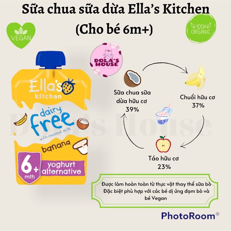 ✔Ella’s kitchen là hãng chuyên đồ ăn dặm cho bé cực nổi tiếng tại Anh và luôn được các bố mẹ tin dùng kể cả bố mẹ Tây hay Việt tại UK ✔️ Nay hãng lại là tiên phong ra mắt dòng sản phẩm NO DAIRY (không nguồn gốc sữa động vật) để các e bé bị dị ứng đạm bò có thể tiếp nhận nguồn dinh dưỡng như những em bé khác ✔️ 3 siêu phẩm được sử dụng sữa thực vật (từ quả dừa) thay thế sữa động vật (dairy) ⭕️ Không chứa đường, muối ⭕️ Không hương liệu ⭕️ Không chứa sữa động vật 👌🏻 100% hữu cơ ❌ Lưu ý sản phẩm có chứa bột ngô (corn flour), lúa mạch (oat) ✳️ Các vị có sẵn ✔SỮA CHUA chuối, táo (bé từ 6 tháng) ✔️ VÁNG PUDDING chuối, dâu (bé từ 7 tháng) ✔️ CHÁO SỮA DỪA lê, quả vả (fig) - loại quả siêu ngon, siêu tốt (bé từ 6 tháng)