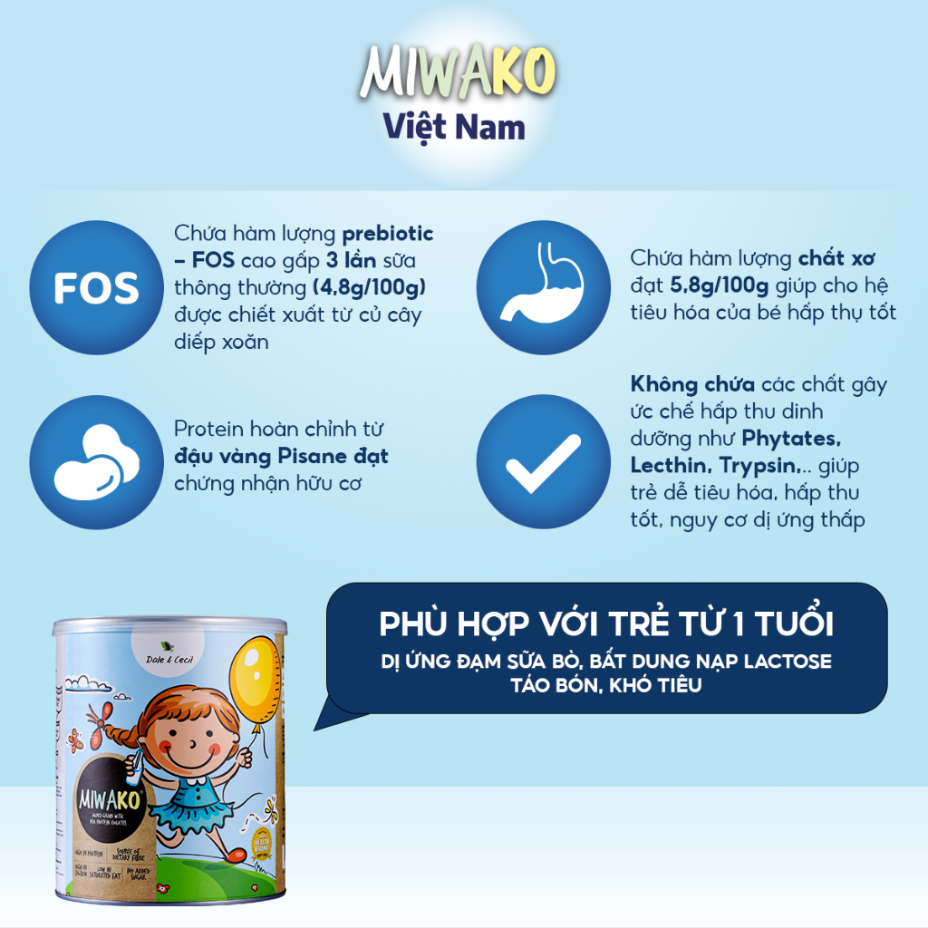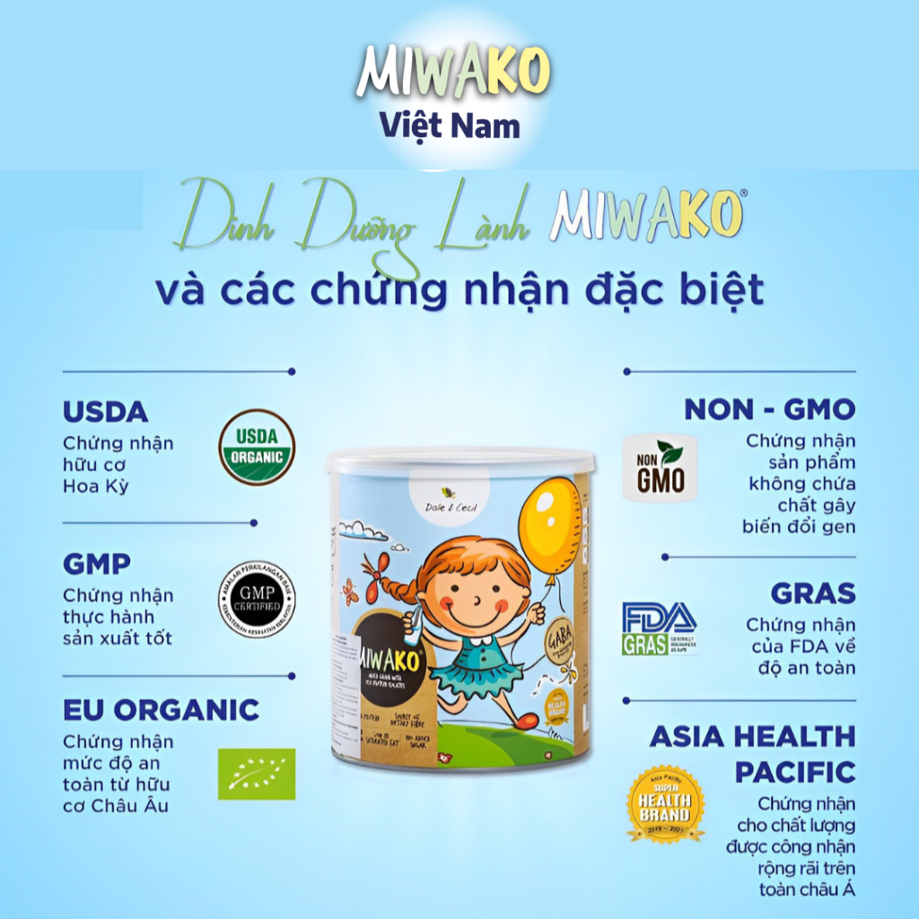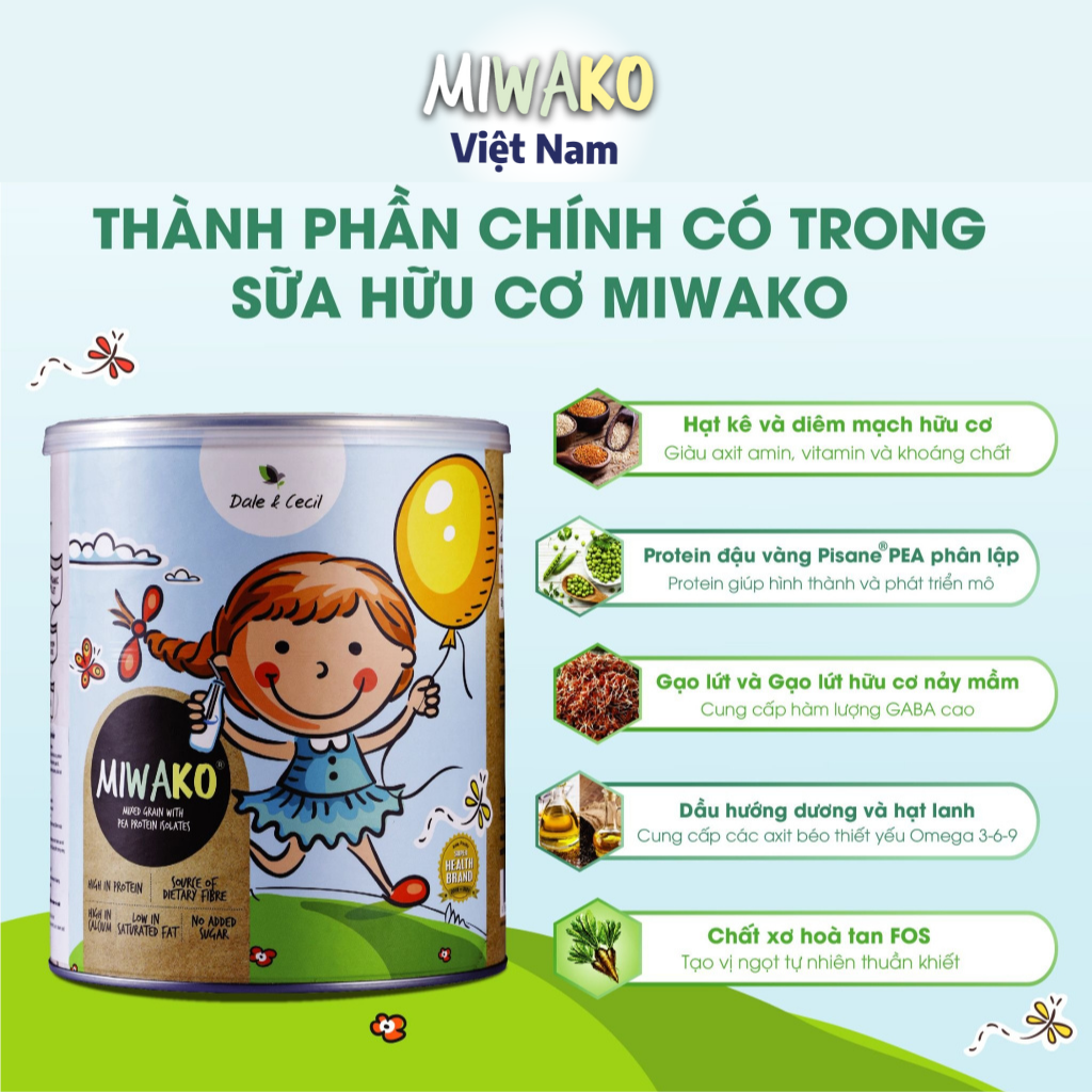 ◉ Miwako là dòng sữa thực vật hữu cơ, được nghiên cứu và phát triển bởi hãng Dale & Cecil – là thương hiệu sữa hàng đầu tại Malaysia. Sản phẩm có nguyên liệu đầu vào đat chuẩn hữu cơ USDA (Mỹ), ORGANIC-EU (Châu âu) và được sản xuất trên dãy chuyền hiện đại theo tiêu chuẩn ISO 22000:2008, GMP