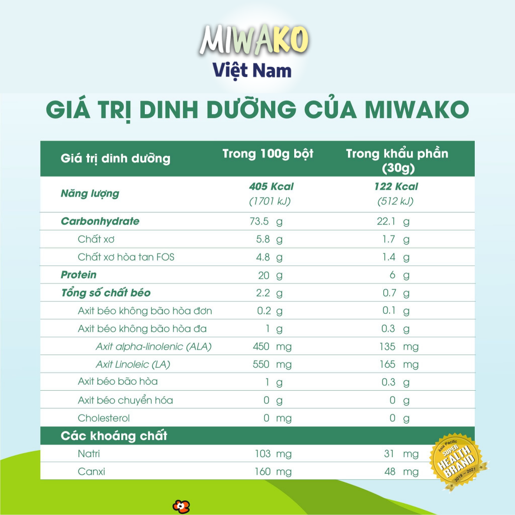 Vị Gạo - Miwako: Hộp 700g, hộp 400g, gói dùng thử 30g